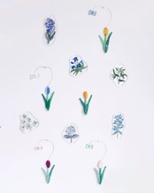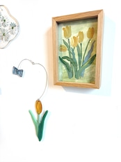 大槻さんの描くチューリップをモチーフに、沖知江子さんがガラスで壁掛けを作って下さいました。