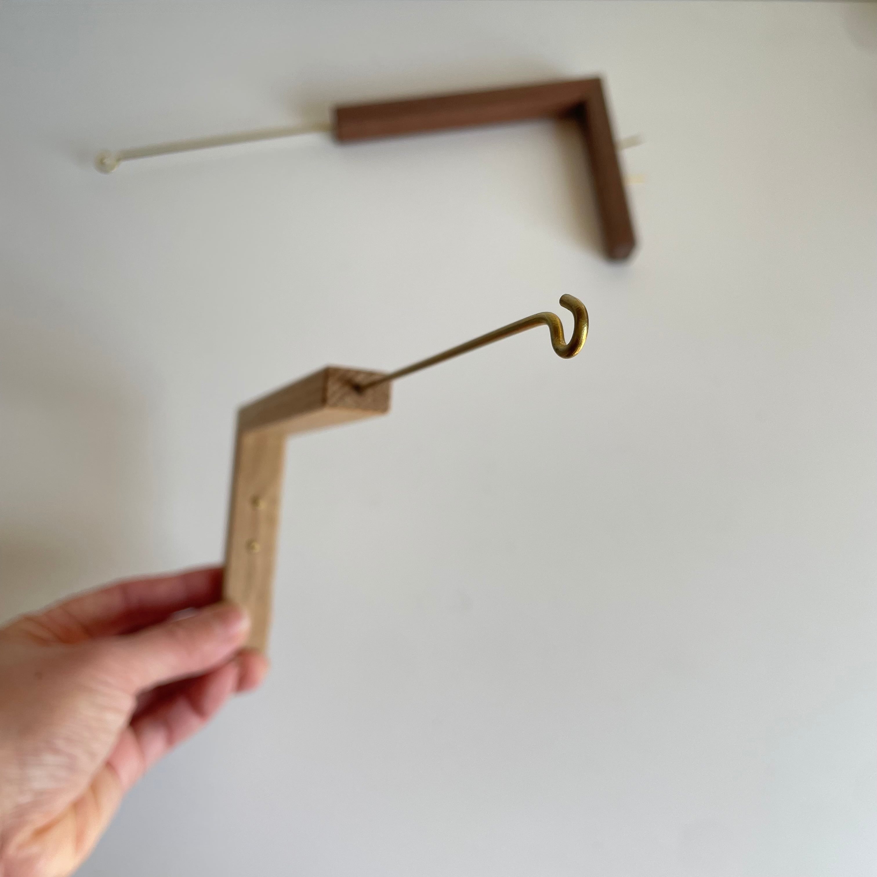 モビールを壁から飾るのに、適した木製L字パーツ。